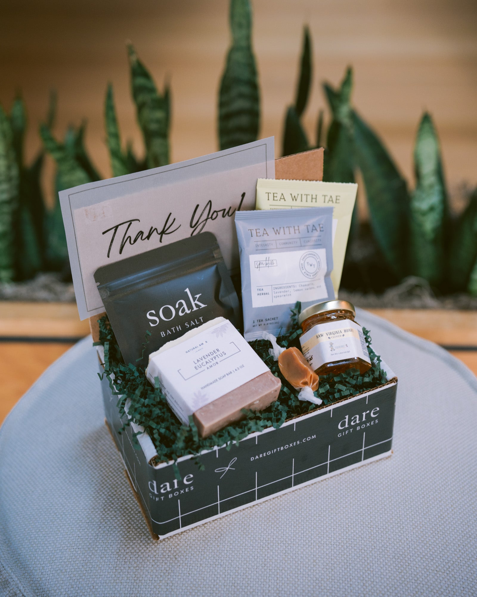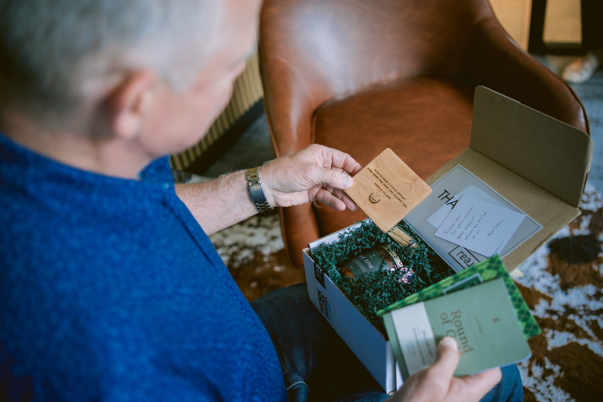 Every gift box comes with a personalized vellum overlay with your selected message or logo and is finished with a handwritten note written by real people.