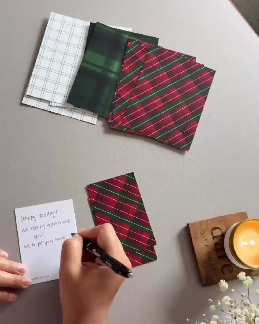 Every gift includes a handwritten note and our customizable gift overlay. Include your logo, no extra!