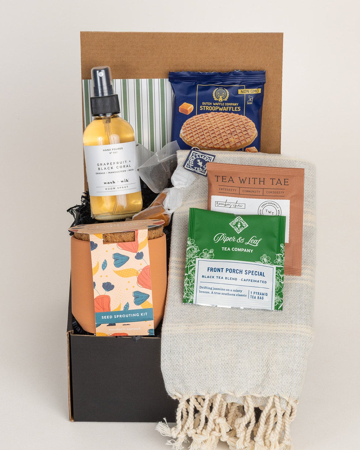 Celebrate every moment with beautifully curated gift boxes, designed to surprise and delight. Each box is brimming with unique items sourced from small businesses, both locally and globally, and is finished with a personalized handwritten note. Our elegant and thoughtful gifts are perfect for birthdays, thank-yous, client appreciation, and just-because moments.