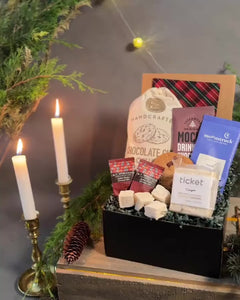 Features a chocolate chip cookie kit, two drinking chocolate packets, marshmallows, two chocolate bites, and your message on a handwritten note.